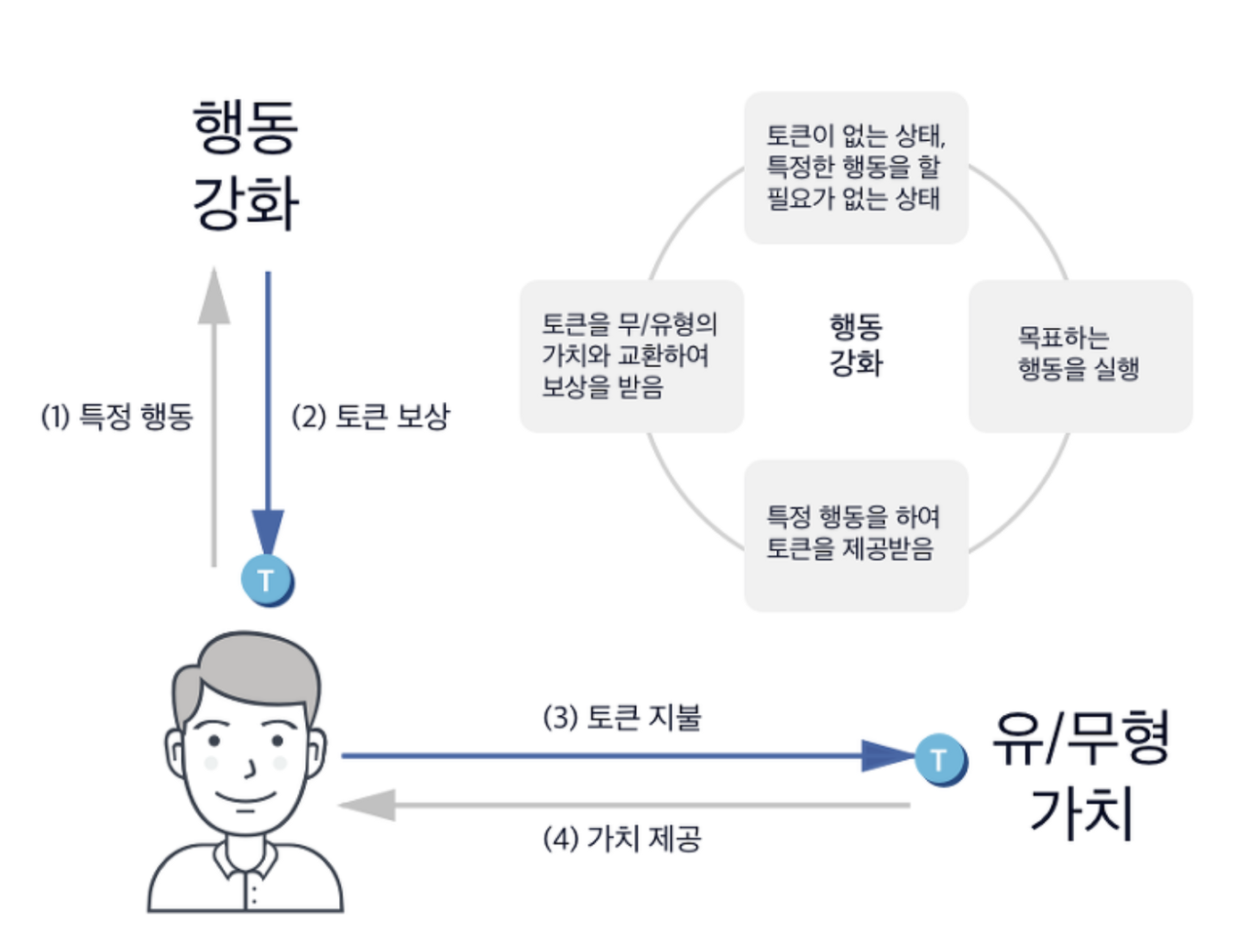 기존 토큰 이코노미와 다르게 블록체인에서는 토큰자체가 강화제 역할을 함.