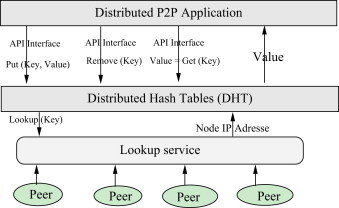 DHT는 Distributed Lookup Services의 일종이다. Hash 함수로 변환된 key 값과 연관된 value를 모두 연결된 포맷으로 분산화하여 저장하여 대용량 파일의 빠른 검색을 가능하게 한다.
