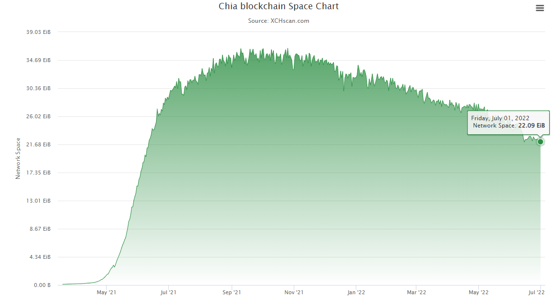 network capacity, 즉 network에 저장되어 있는 파일의 양은 chia가 22EiB로 filecoin(IPFS)의 17.755EiB보다 앞서있음.