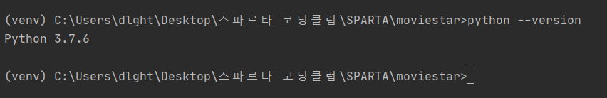 - 파이썬 버젼 확인: python --version
